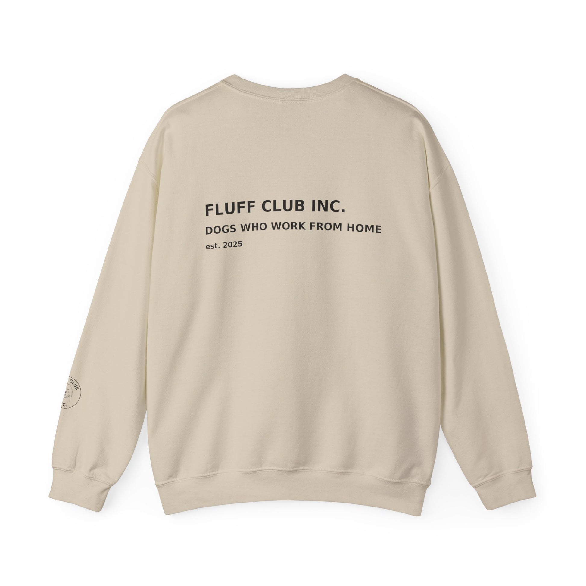 This is the Fluff Club Sweatshirt- a classic, medium-heavy crewneck designed for everyday comfort and durability. Made from a balanced cotton-poly blend, it offers a structured fit with a soft interior—reliable enough for daily wear, comfortable enough for long hours at home under dog supervision.